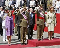 Don Juan Carlos y Doña Sofía, junto con el Príncipe de Asturias, que vestía el uniforme de gala de la Armada, y Doña Letizia, han llegado pasadas las 12.00 horas a la plaza del General Torrijos, acompañados por los vítores del público y algunos pitidos.